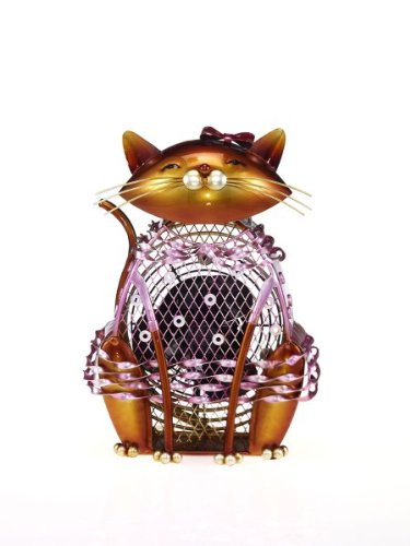 Let this charming Cat Figurine Fan - Katerina brighten your day while it keeps you cool. This decorative fan can easily become a permanent part of any room's decor, and its compact size makes it an ideal table fan as well. Stylish and sleek fan Table or desktop 1 Speed Motor Quality cast metal construction 1 year manufacturer warranty Assembly level/degree of difficulty: Easy.