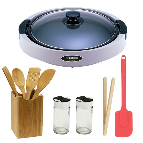 >> Zojirushi Gourmet Sizzler Electric Griddle Bundle with 5 Piece Bamboo Utensil Set + 10.5in Silicone Spatula + Bamboo Toast Tong - 6.5 Inch and Two Glass Spice Bottles